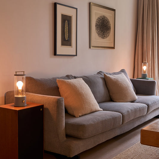 The Muse Portable Lamp in Selvedge Blue + Setting Plaster Pink - Set of 2
