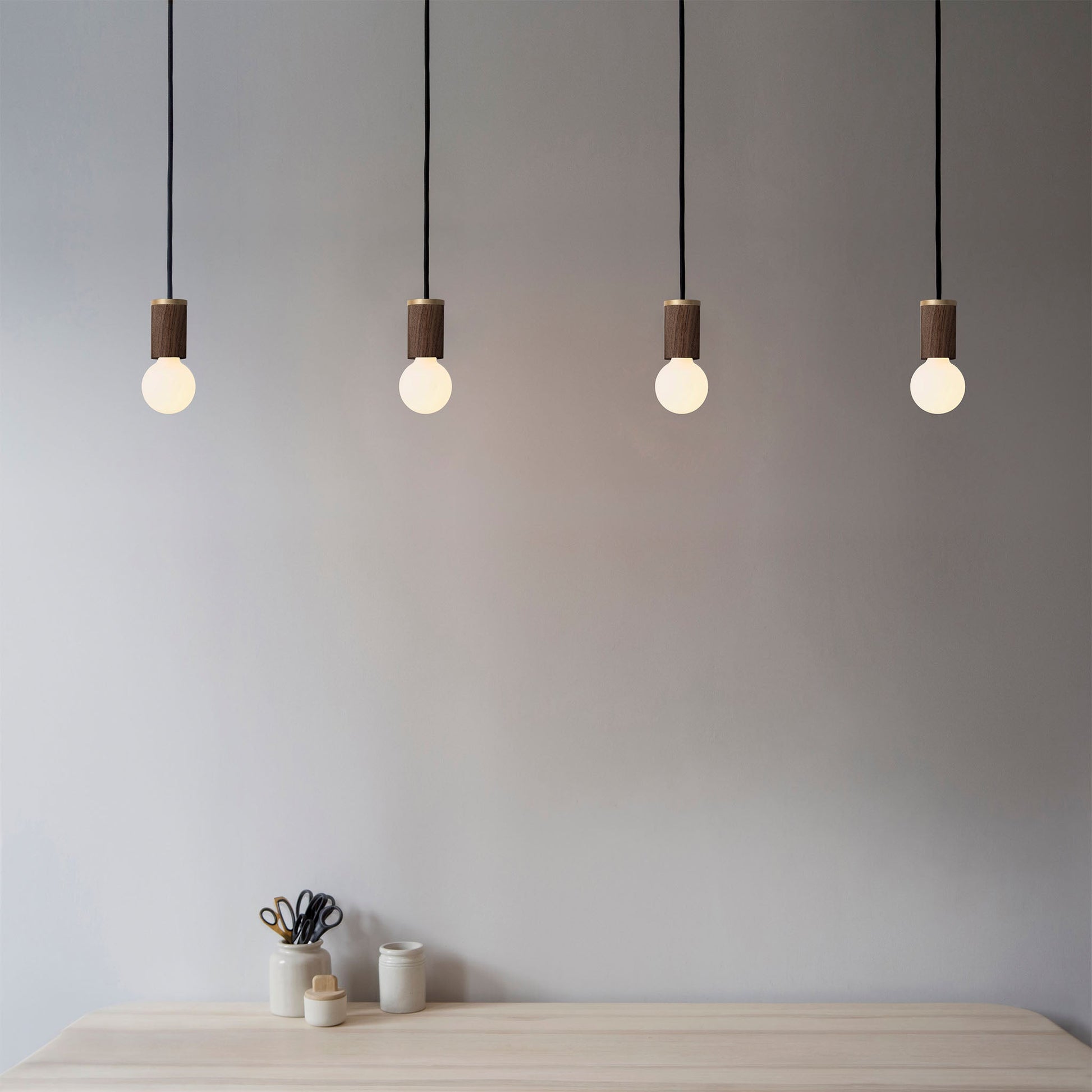 Available with the Brass, Graphite, Oak or Walnut pendant.