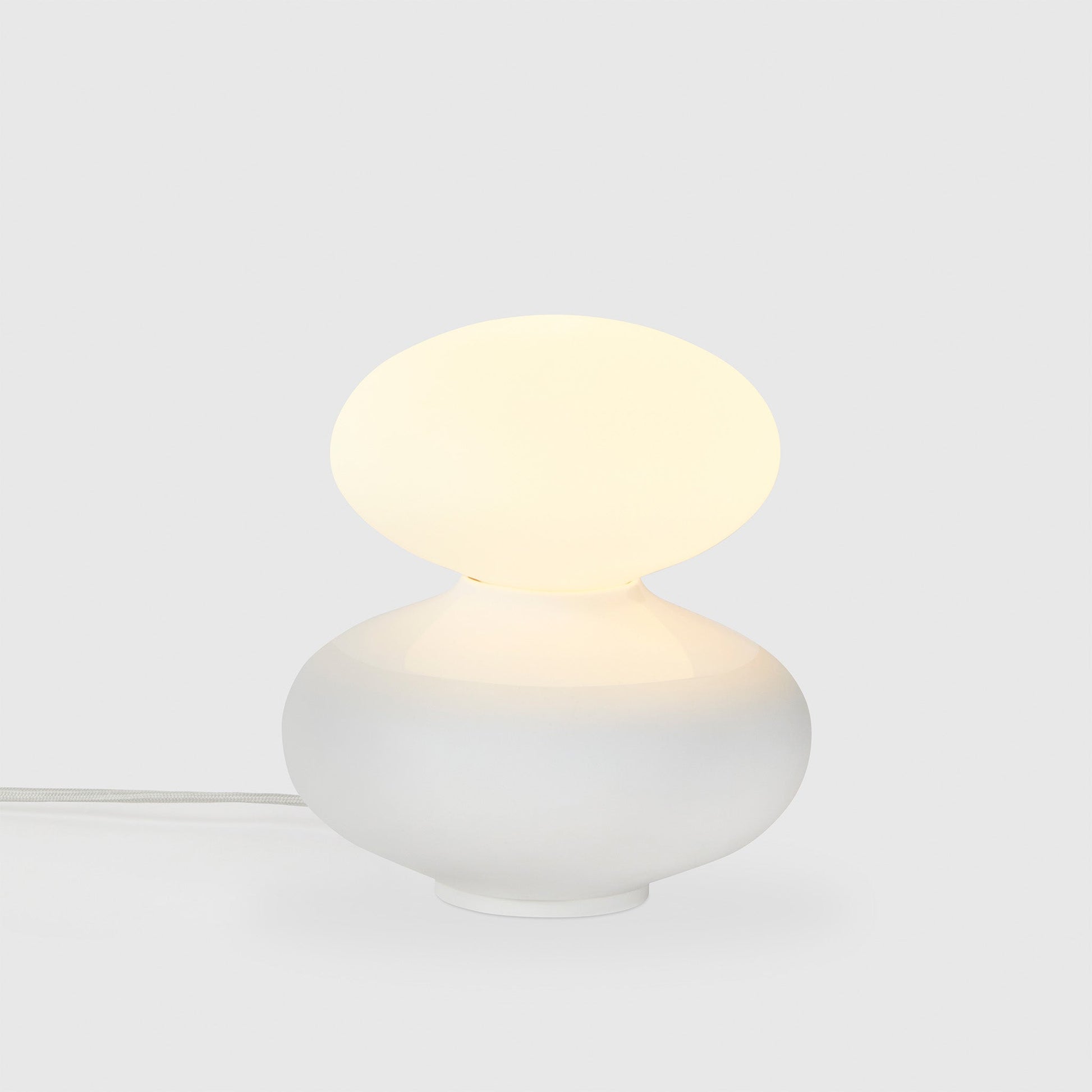 The smooth curvatures and matte porcelain finish of the Oval bulb, the Reflection Oval Table Lamp comes complete with a beautiful high-gloss glaze in the top third of the base to accentuate the bulb??s glow.