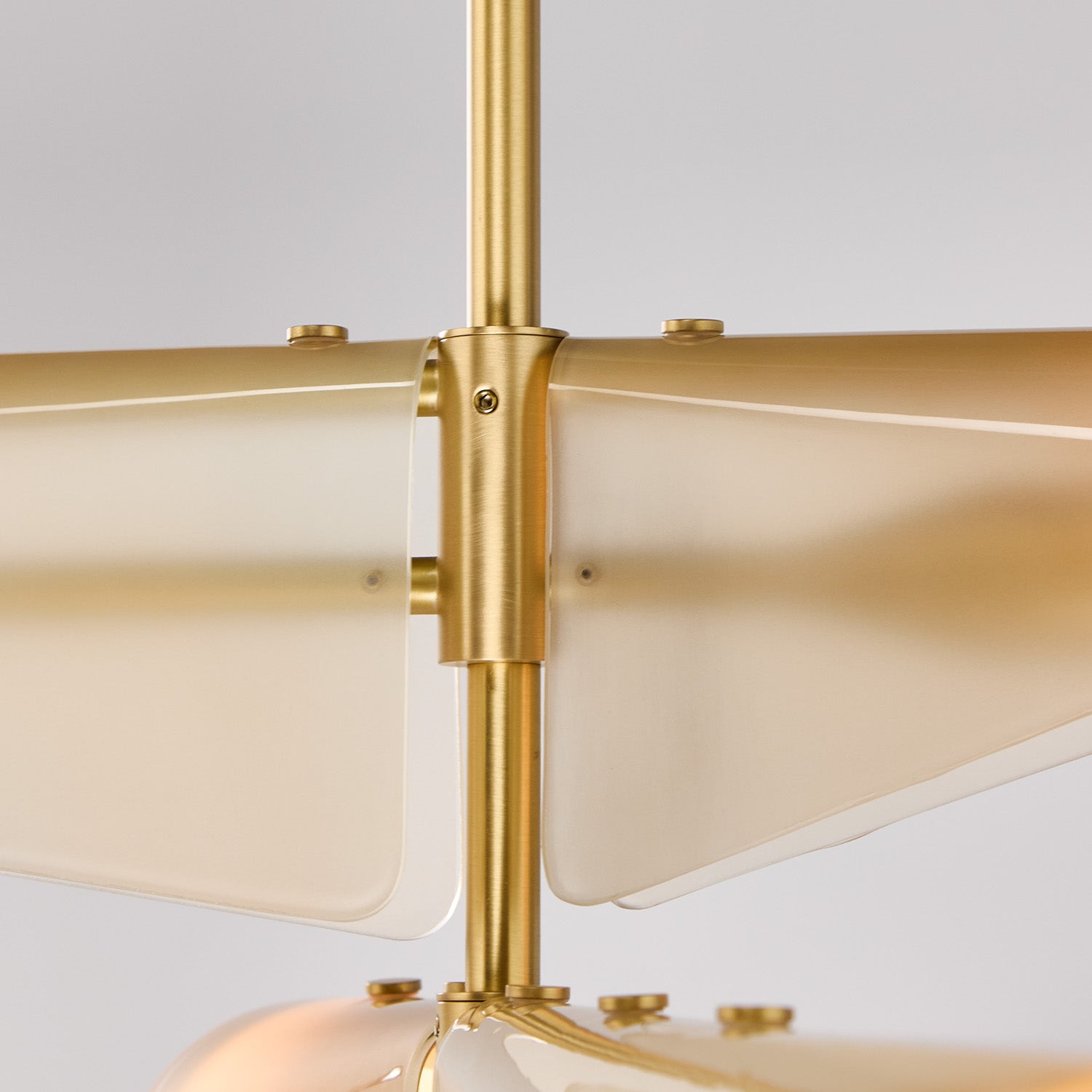Inspired by the graceful descent of sycamore seedpods, our Sycamore Chandelier captures the natural beauty and elegance of these delicate seeds. The chandelier features glass wings that curve gently over a brushed solid brass frame, embodying the seed's translucent quality and illuminating any space with a soft, warm glow. The design celebrates the rhythm of the seasons, reflecting the serene flights of sycamore seeds in spring and autumn.