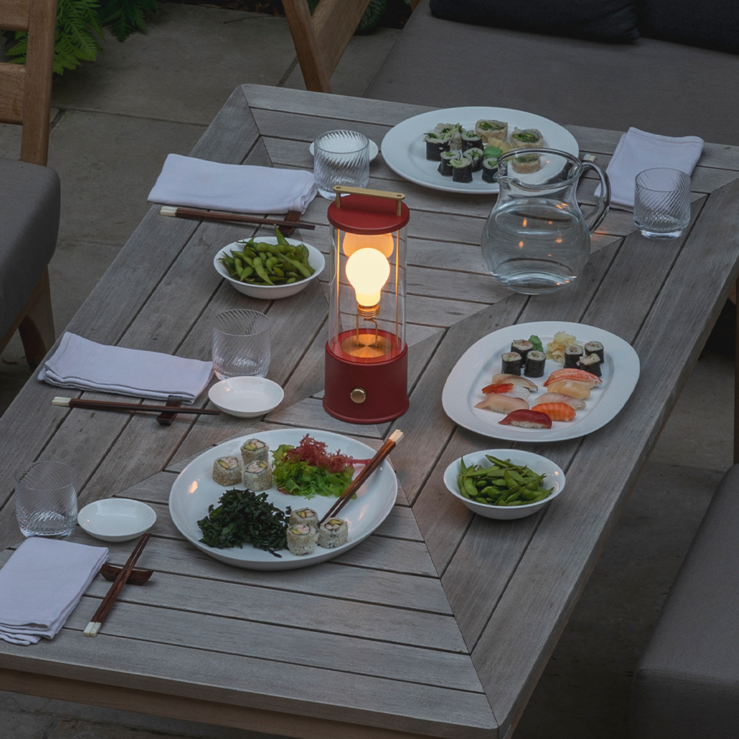 Designed to be repaired over time, it features cordless long-life battery, Dim to Warm LED technology and a custom integrated dimmer, and rated IP44, it's also weatherproof.
